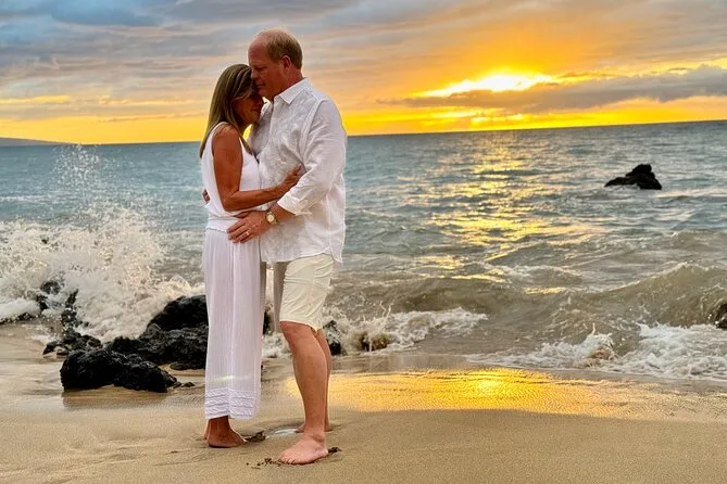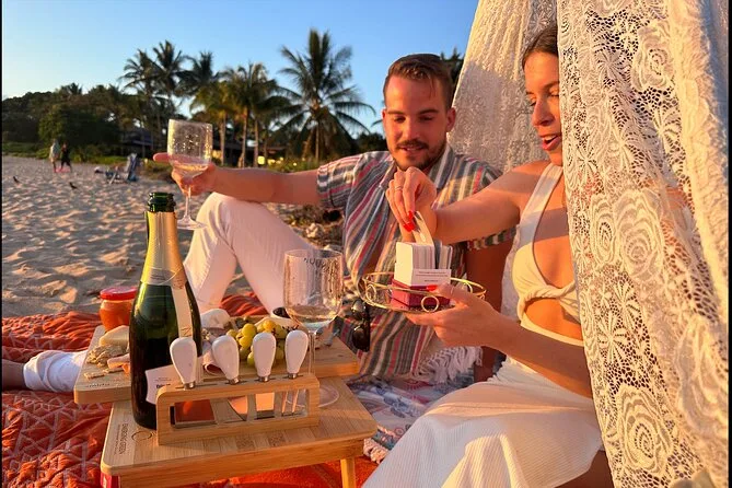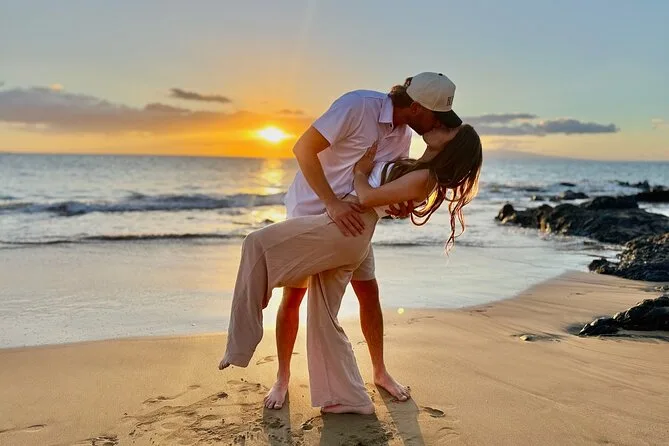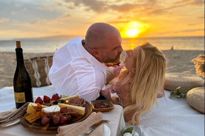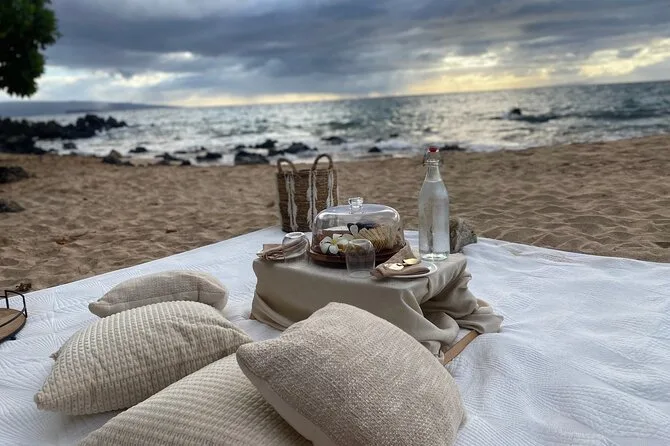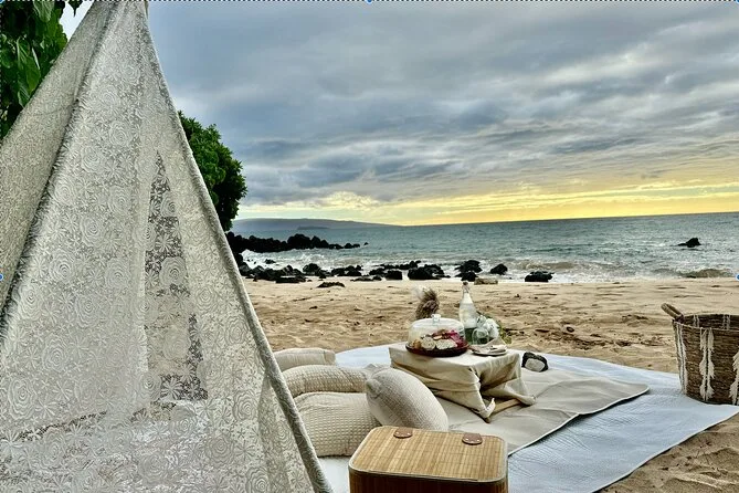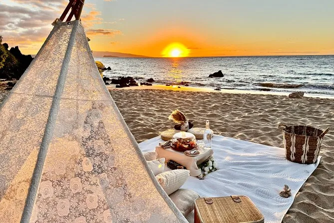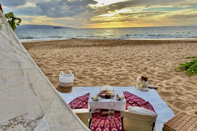Du lehnst dich entspannt zurück in einem gemütlichen Strand-Setup an der ruhigeren Küste von Maui, genießt eine großzügige Charcuterie-Platte während der Himmel seine Farben wechselt, spielst überraschende Verbindungsspiele und bekommst authentische Sonnenuntergangsfotos direkt aufs Handy, noch bevor du gehst. Locker, aber trotzdem besonders – du wirst vielleicht länger bleiben wollen als geplant.