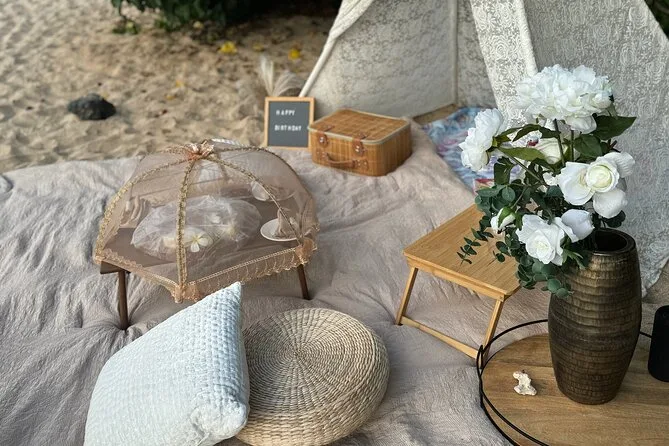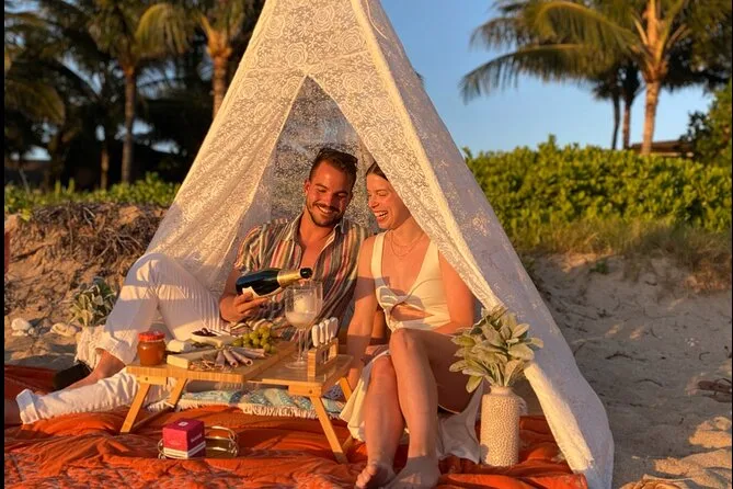 Dein Abend beinhaltet Flaschenwasser, eine großzügige Charcuterie-Platte mit süßen und herzhaften Leckereien, gemütliche Kissen und Decken unter einem Leinen-Tipi für Privatsphäre, hochwertiges Besteck, ein Kartenspiel für Beziehungsspiele, falls gewünscht, sowie authentische Fotos, die deine lokale Begleiterin macht – alles direkt aufs Handy, bevor du gehst.