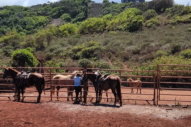 Der Ausritt beginnt am Mendes Ranch Corral auf Mauis Circle M Ranch.
