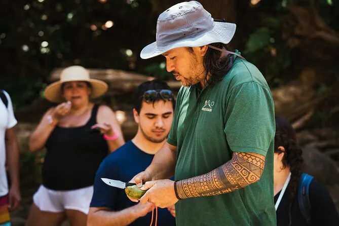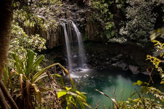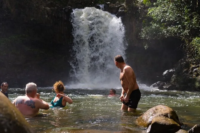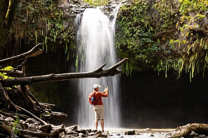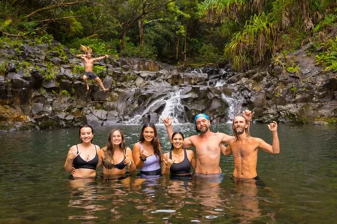 Dein Tag umfasst den Transport entlang der Hana Highway zum Trailhead nach dem Treffen am Startpunkt, eine geführte Wanderung durch Regenwaldtäler mit einem lokalen Naturführer, die Möglichkeit, unter Wasserfällen zu schwimmen oder von Basaltfelsen zu springen, sowie Snacks und ein gesundes Mittagessen – alles in kleiner Gruppe.