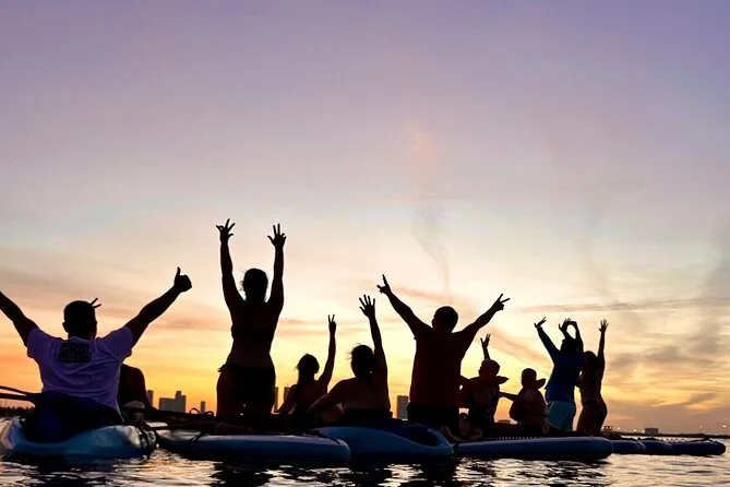 Gleite bei Sonnenuntergang auf leuchtenden Paddleboards über Miami Beach, begleitet von einem Guide, der jeden Winkel dieser Gewässer kennt. Du bekommst einfache Anweisungen, wenn du neu bist, und hörst Geschichten vom lokalen Leben, während die Stadt vom Gold ins Neonlicht taucht. Die LED-Beleuchtung unter deinem Board verwandelt die Dämmerung in ein magisches Erlebnis – keine gewöhnliche Tour, sondern ein Moment, der bleibt.