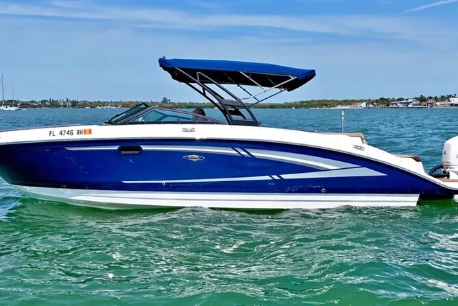 Ihr Tag beginnt am Steg beim Bayside Marketplace, wo Sie mit Ihrer Gruppe an Bord gehen für eine private zweistündige Tour rund um Star Island und Fisher Island. Sie können die Bluetooth-Lautsprecher für Musik nutzen, erhalten Flaschenwasser mit Eis im Kühler, eine Flasche Champagner zum Teilen an Deck sowie Zugang zu Dusche und Toilette während der gesamten Tour.