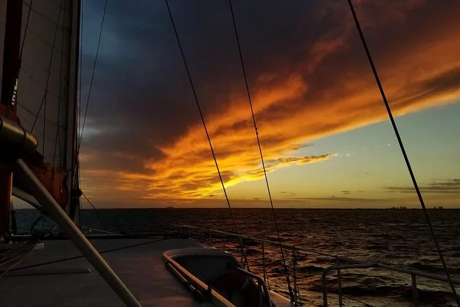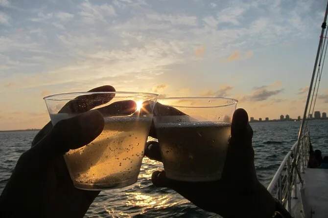 Dein Abend beinhaltet eine Segeltour auf einem 24 Meter langen Katamaran entlang der Biscayne Bay oder an South Beach vorbei, begleitet von Musik und einem gratis Glas Champagner zum Sonnenuntergangs-Toast nach dem Einchecken am Steg.