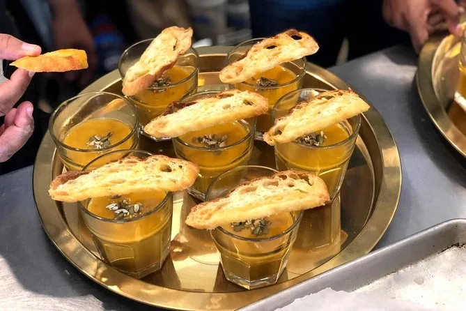 Die Verkostungen in mehreren Restaurants ergeben ein komplettes Mittagessen – alles im Ticketpreis enthalten.