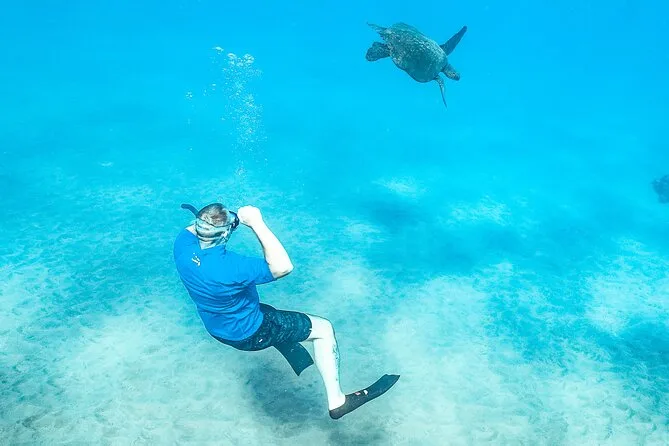 Dein Tag beinhaltet die Nutzung der Schnorchelausrüstung (keine Vollgesichtsmasken), reef-safe Sonnencreme, ein Frühstück mit Gebäck, tropischem Obst und Kaffee zum Start, ein Mittagessen mit Sandwiches und Nudelsalat nach dem Schnorcheln in Turtle Town sowie Erfrischungen wie Cola oder Tee an Bord – alles begleitet von einem freundlichen lokalen Team, das für eine entspannte Stimmung von der ersten Welle bis zum letzten Lachen im Hafen sorgt.