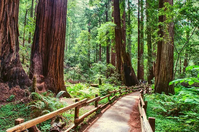 Dein Tag beinhaltet eine geführte Tour mit Erklärungen, Hoteltransfer vom Hilton Union Square, Eintritt ins Muir Woods National Monument sowie Freizeit in Sausalito, bevor es per Minibus oder optional per Fähre zurück über die San Francisco Bay geht.