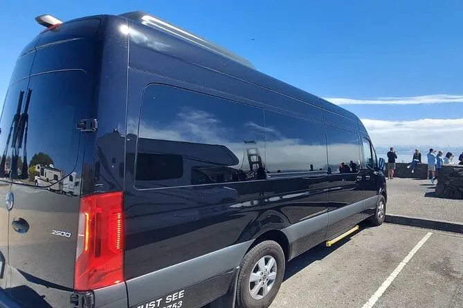 Ja, du reist mit deiner Gruppe in einem klimatisierten Mercedes Sprinter Van.