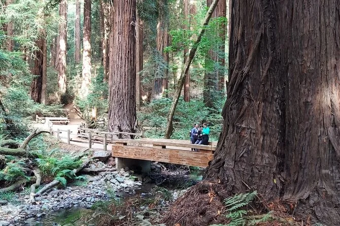 Dein Tag beinhaltet bequemen Transport im Mercedes Sprinter Van über die Golden Gate Bridge, Eintritt in Muir Woods ohne Warteschlangen sowie viel freie Zeit unter den Mammutbäumen und an Sausalitos Ufer, bevor du zurück nach San Francisco gebracht wirst.