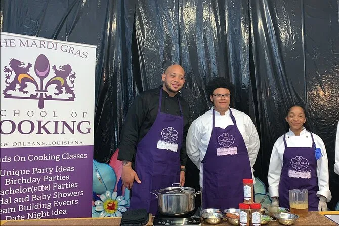 Dein Abend beinhaltet alle Zutaten für Chicken & Andouille Wurst Gumbo, Shrimp Étouffée und Bananas Foster; reichlich Wein und Softdrinks; praktische Anleitung von lokalen Köchen; und Zeit, dein Essen gemeinsam zu genießen, bevor es zurück in die lebhaften Straßen von New Orleans geht.