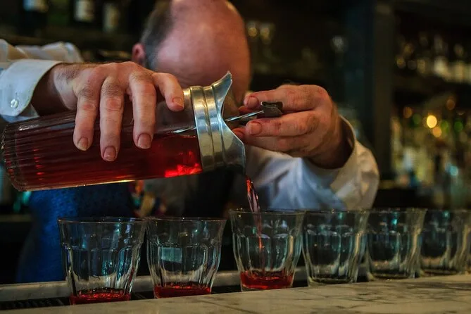 Deine Buchung umfasst die geführte Tour zu Fuß, drei Cocktails (inklusive Steuern und Trinkgeld) sowie lokale Steuern.