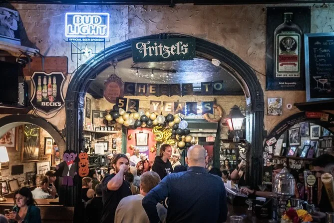 Dein Abend führt dich mit einem lokalen Experten zu Fuß durch vier legendäre Bars im French Quarter, inklusive drei klassischen Cocktails (Steuern und Trinkgeld sind inklusive). Zum Abschluss genießt du Live-Jazz bei Fritzel’s – alles gut erreichbar von Downtown-Hotels, aber ohne Hotel-Transfer.