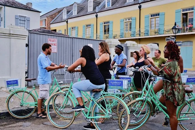 Dein Tag beinhaltet Fahrrad und Helm für jeden, eine Wasserflasche zum Erfrischen, einen erfahrenen lokalen Guide, der persönliche Geschichten erzählt, während du fünf Viertel mit dem Rad erkundest – inklusive Stopps am Jackson Square und St. Roch Friedhof. Die Gruppen sind auf zehn Personen begrenzt für eine entspannte Atmosphäre.