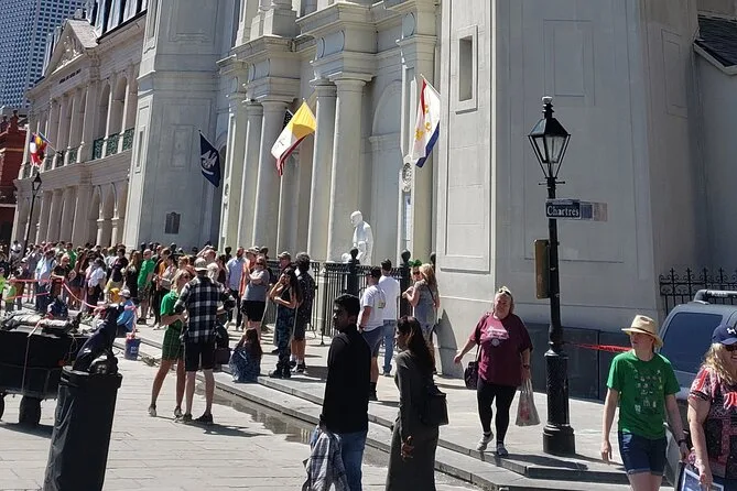 Die Tour führt zu den wichtigsten Orten im French Quarter, darunter Jackson Square und weitere historische Stätten rund um Pandemien.