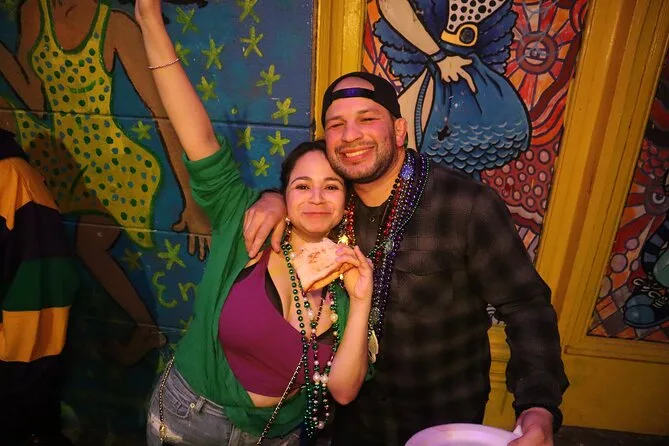 Zwischendurch schlenderten wir über den Frenchmen Art Market – die Zeit verging wie im Flug, wenn man so im Flow ist. Jemand bot an, mein Gesicht mit Glitzer zu schmücken (klar, warum nicht?), und ich plauderte mit einer Schmuckkünstlerin über ihre Lieblingsbands aus der Gegend. Die Nacht wurde dann etwas verschwommener, als unsere Gruppe versuchte zu tanzen – Marcus feuerte uns an, als wären wir Profis, obwohl ich ziemlich sicher bin, dass ich albern aussah. Ich denke immer noch an die Perlenkette, die ich für die „meist enthusiastischen“ Moves gewonnen habe. Wenn du New Orleans an deinem ersten Abend wirklich spüren willst, dann ist das hier genau das Richtige.