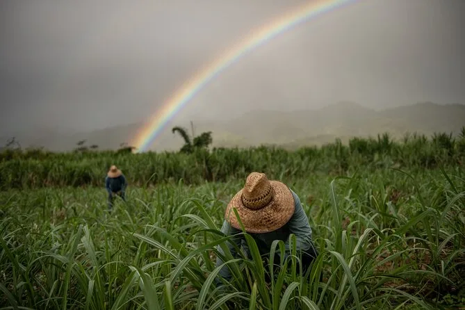 Mit klebrigen Händen vom frischen Zuckerrohrsaft sah ich unserem Guide zu – Keoki, glaube ich – wie er einen weiteren Stängel schnitt und ihn herumreichte. Die Luft hier in Kunia war süß, aber nicht aufdringlich, eher ein Hauch von Gras und etwas Altem – vielleicht der Geist der Ananasfelder, als das Land noch Delmonte gehörte. Wir hatten gerade erst mit der Kō Hana Rum Tour begonnen, da waren meine Schuhe schon leicht schlammig vom Herumstreifen zwischen den einheimischen hawaiianischen Zuckerrohrreihen. Ich versuchte, einen der Namen auszusprechen; Keoki grinste, korrigierte mich sanft und erzählte, dass jede Sorte ihre eigene Geschichte hat.
