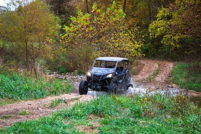 Du nutzt für die Tour ein Can-Am Fahrzeug pro Gruppe und fährst damit auf privaten Ranchwegen. Ein lokaler Guide begleitet dich die ganze Zeit – du siehst arbeitende Rinderherden und erkundest Hügel, Täler und Bäche bei diesem praktischen Offroad-Erlebnis in den Ozarks.