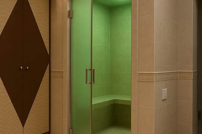 Der private Jacuzzi-Raum war größer als erwartet, mit Platz für unsere kleine Gruppe (wir waren zu zweit, aber es passen bis zu sechs Personen rein). Aus dem Wasser stieg sanfter Dampf auf, und die Fliesen fühlten sich angenehm warm unter den Füßen an. Nach einer kurzen Dusche tauchten wir in den Whirlpool ein und ließen die Wärme und die sprudelnden Blasen ihre Wirkung entfalten. Aus dem Nachbarraum hörte ich leises Lachen – schön zu wissen, dass auch andere entspannen, aber wir hatten unsere eigene kleine Oase. Die Dampfsauna war nur ein paar Schritte entfernt, und die Wärme tat meiner Haut besonders gut nach dem kühlen Spaziergang draußen.