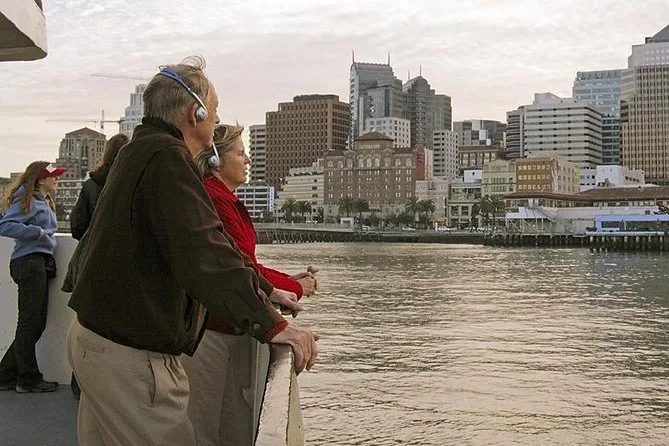 Dein Ticket beinhaltet direkten Zugang zum Boarding, mehrsprachigen Audiokommentar von Brückenbau bis Stadtgeschichte (einfach Sprache wählen), sowie Zugang zu Innen- und Außenbereichen mit stets sauberen Toiletten. Du kannst dein eigenes Essen mitbringen oder an der Bar Snacks und Getränke holen, während du die Aussicht auf San Francisco genießt, bevor es zurück an Land geht.