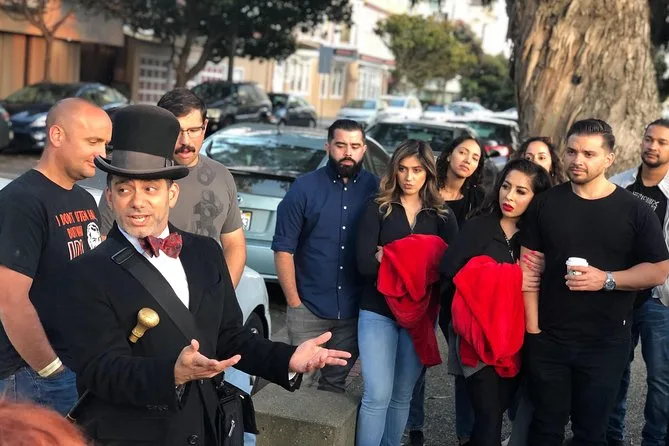 Dein Abend beinhaltet einen geführten Spaziergang mit dem professionellen Geschichtenerzähler Christian Cagigal durch historische Viertel San Franciscos; alle Geschichten werden draußen entlang von baumgesäumten viktorianischen Straßen erzählt, bevor du nach etwa 90 Minuten zum Ausgangspunkt zurückkehrst.