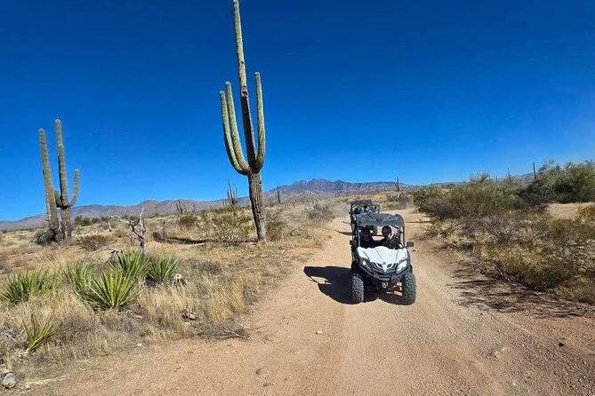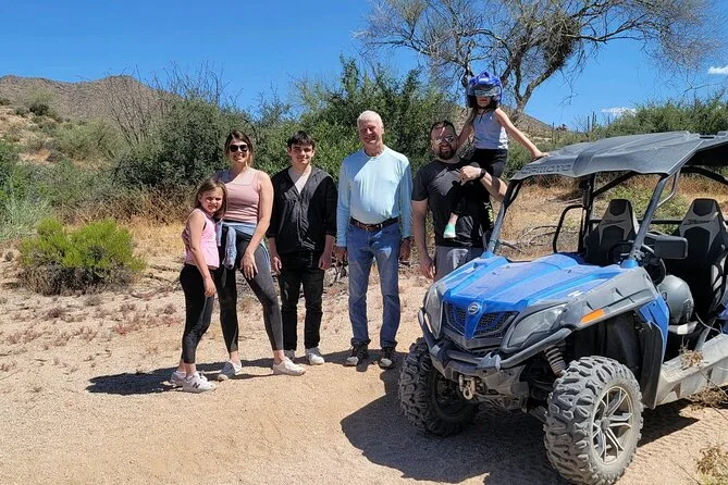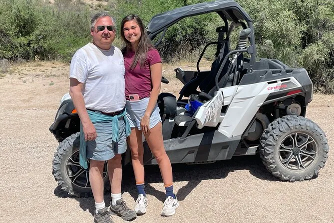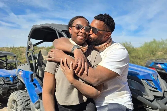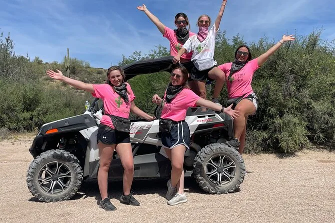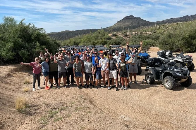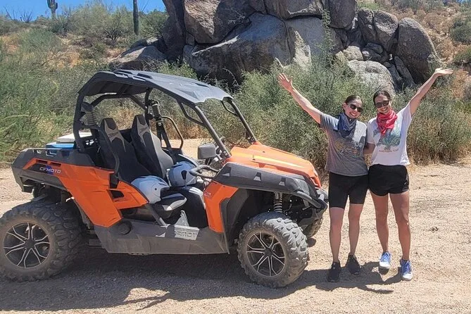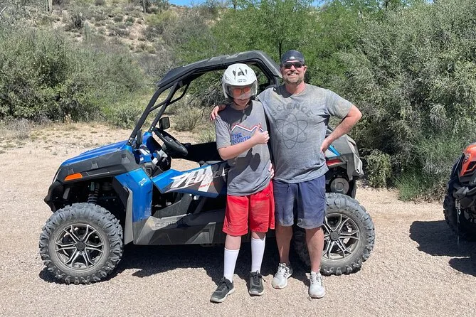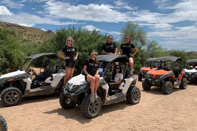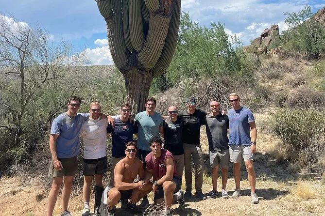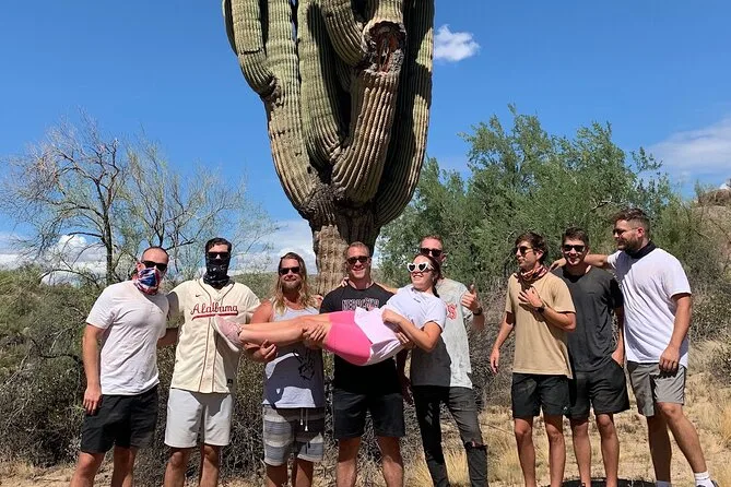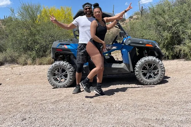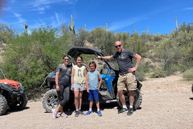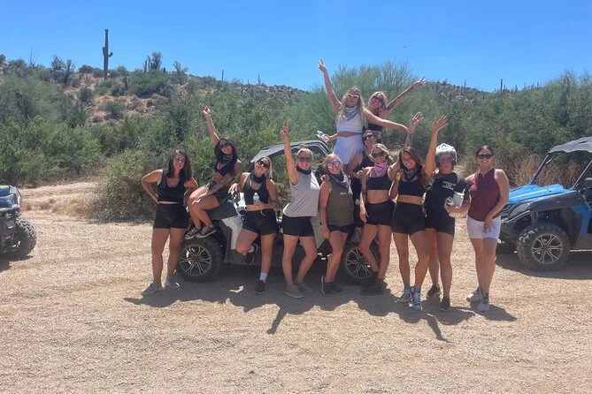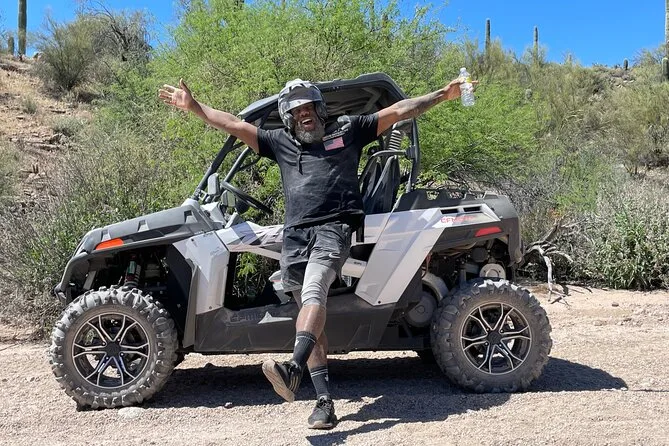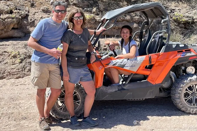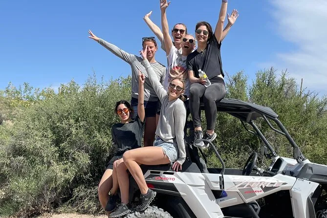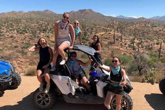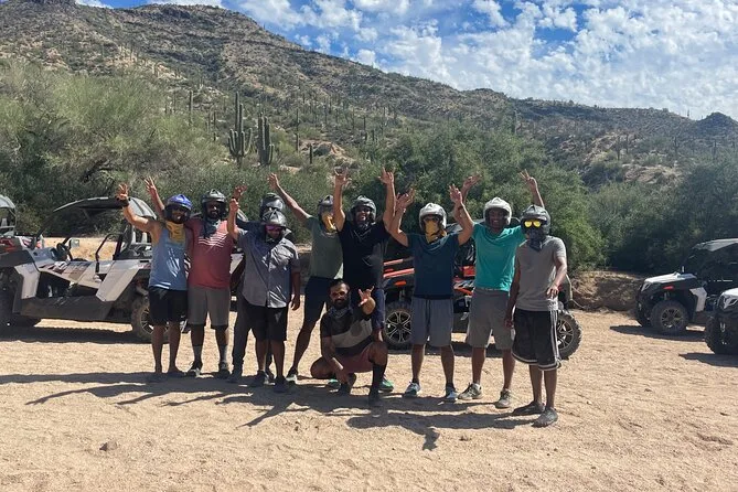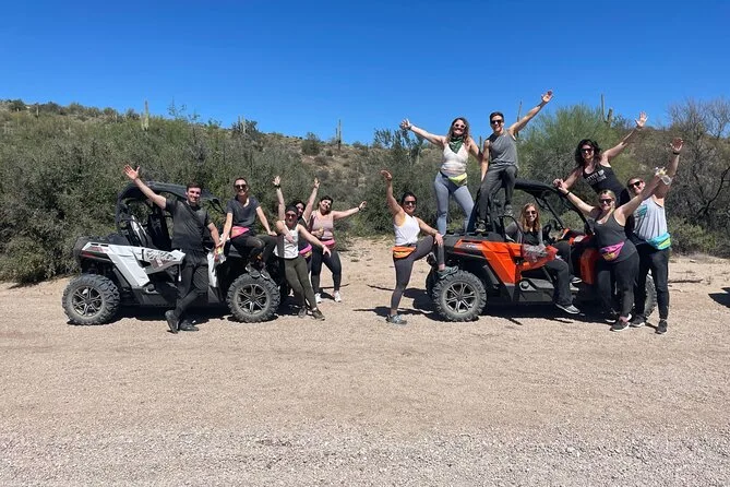 Dein Tag beinhaltet die Nutzung eines zweiteiligen 400cc Sand Buggys mit Treibstoff, Helmen, Staubschutz (Gators), Wasserflaschen und Snacks bei einem malerischen Halt am Saguaro Lake sowie Fotos, die dein professioneller Guide unterwegs macht – bevor es zurück nach Scottsdale geht, staubig und glücklich.