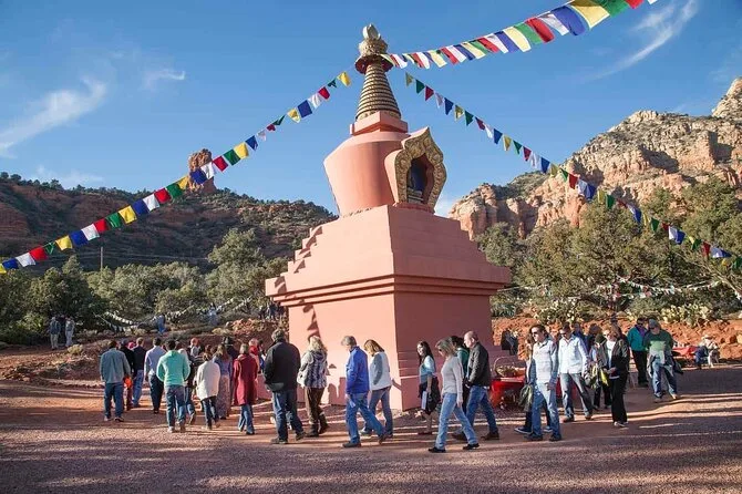 Du fährst durch Sedonas berühmte rote Felsenlandschaft in einem offenen Fahrzeug mit Live-Kommentar eines lokalen Guides. Schlendere ruhig um die Amitabha Stupa und genieße die wechselnden Farben am Cathedral Rock und Thunder Mountain. Viele Fotostopps und kleine Momente – wie der Duft von Räucherstäbchen oder das Lachen über ungewöhnliche Felsformen – bleiben dir lange im Gedächtnis.