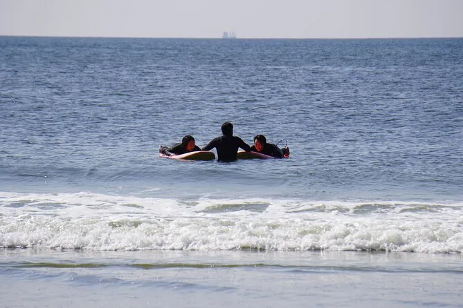 Beim ersten Versuch, eine Welle zu erwischen, stürzte ich heftig – kam lachend mit Salzwasser in der Nase wieder hoch. Aber nach ein paar Versuchen schaffte ich es, für ein oder zwei Sekunden zu stehen. Das Wasser war kühl, aber mit dem Neoprenanzug gut auszuhalten. Man konnte Leute am Ufer joggen sehen und Musik hören, die von einem dieser tragbaren Lautsprecher herüberwehte, die immer jemand mitbringt. Am Ende unserer 90 Minuten hatte jeder mindestens eine Welle erwischt – auch wenn es nur für einen kurzen Moment war.
