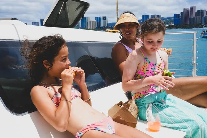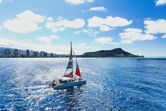 Steig an Bord eines Waikiki-Katamarans für eine barfuß Fahrt entlang der Küste von Oahu, schnorchle im Turtle Canyon mit grünen Meeresschildkröten unter dir und entspanne danach bei Mittagessen und lokalen Drinks, während Diamond Head vorbeizieht. Lachen, salzige Brisen im Haar und unvergessliche Momente inklusive.