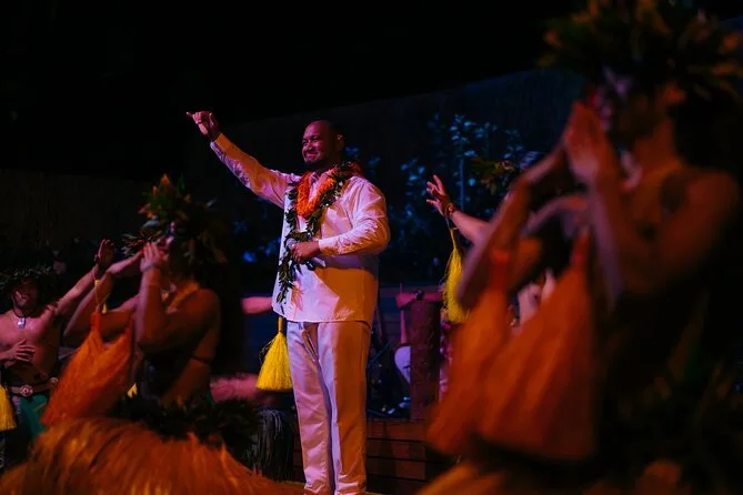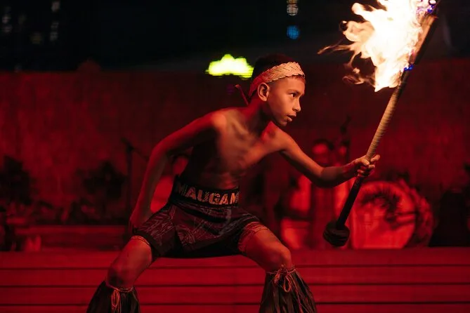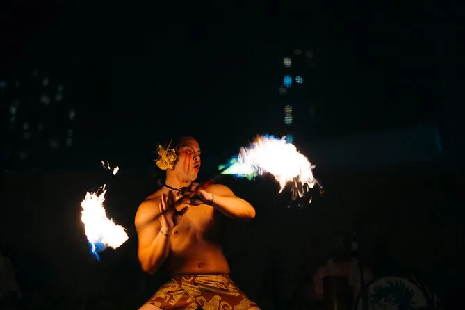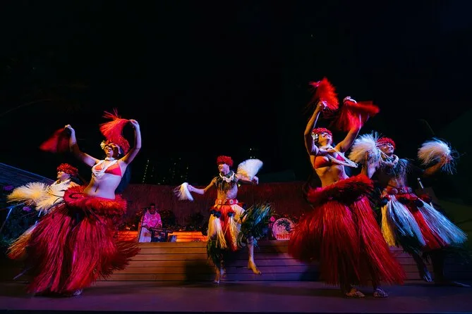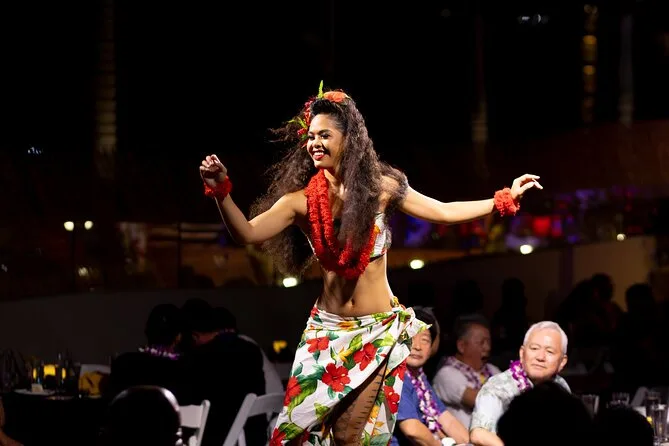 Du siehst Hula-Tanz, Live-Musik, polynesische Kunstvorführungen und ein spektakuläres Feuermessertanz-Finale.