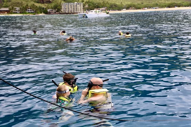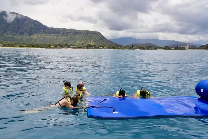 Dein Tag beinhaltet hochwertige Schnorchelausrüstung und Schwimmhilfen zum Erkunden der Korallenriffe bei West Oahu sowie fachkundige Betreuung durch zertifizierte lokale Guides. Beim Einsteigen gibt es Frühstückssnacks, danach genießt du ein frisch zubereitetes Mittagessen – Puten-Pesto-Wrap mit Chips (auch vegetarisch oder glutenfrei auf Wunsch) – und dazu kostenloses lokales Bier, Cocktails, Wein oder Softdrinks, bevor es am frühen Nachmittag zurück ans Ufer geht.