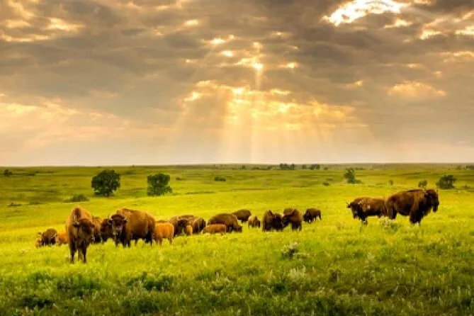 Du kannst Bisons, Bären (Grizzly oder Schwarzbär), Wölfe, Elche, Hirsche, Kojoten, Pronghorn-Antilopen, Adler und Füchse entdecken.