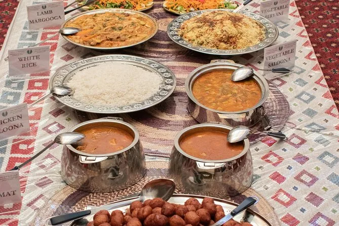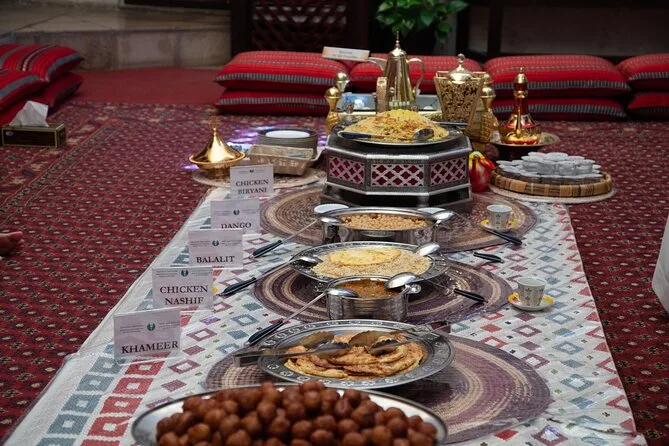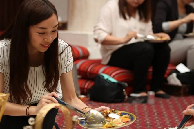 Dein Besuch umfasst ein komplettes emiratisches Mittagessen mit lokalen Gerichten und Desserts wie Ligamat mit Dattelsirup, unbegrenzt arabischen Kaffee und Tee, serviert von deiner Gastgeberin im historischen Innenhof des Windturmhauses in Al Fahidi, plus eine offene Q&A-Runde zur Kultur mit einem erfahrenen Guide – alles in entspannter Atmosphäre, in der jede Frage willkommen ist, bevor es zurück ins alte Dubai geht.