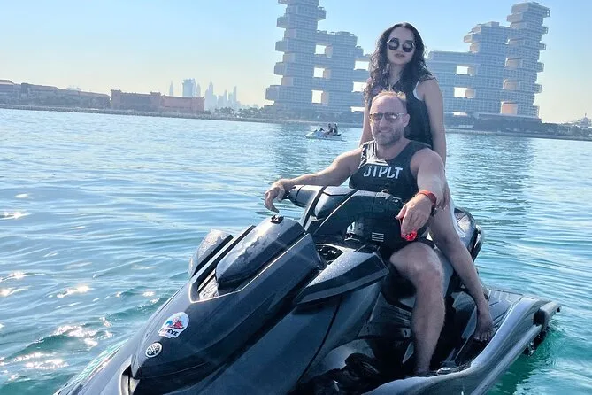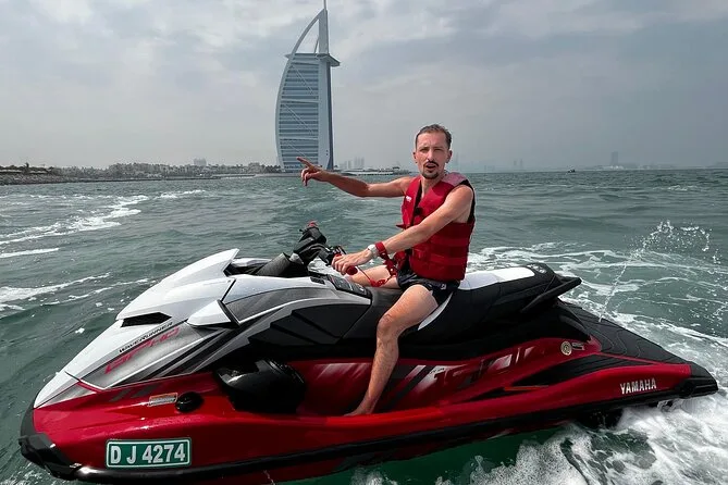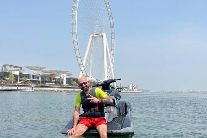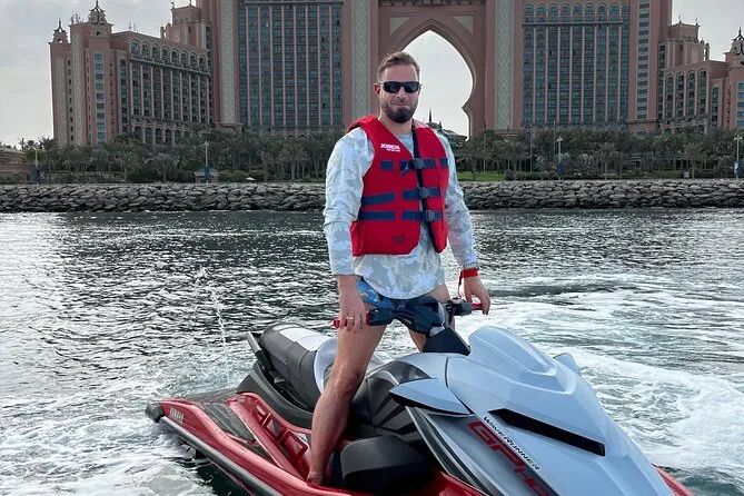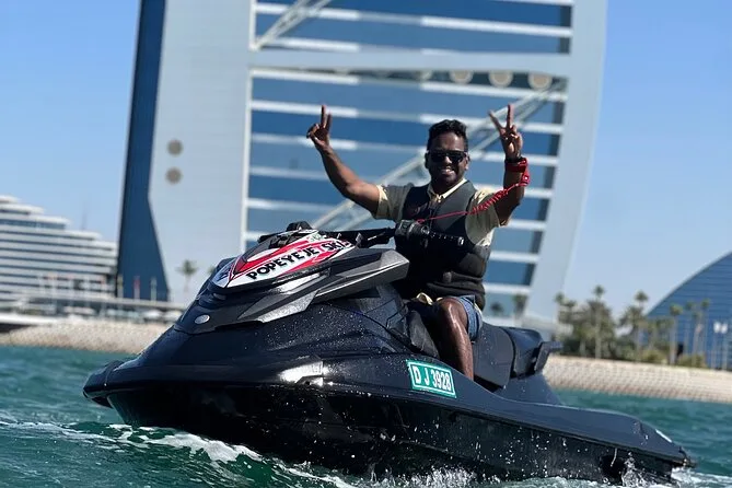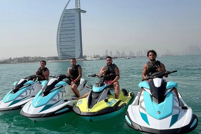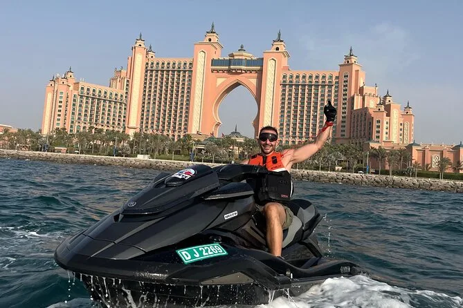 Erlebe eine Jet Ski Tour entlang Dubais Küste mit einem lokalen Guide, halte für Fotos bei Bluewaters Island, Atlantis auf der Palm Jumeirah und dem Burj Al Arab. Spüre Sonne und Meeresbrise bei ikonischen Ausblicken vom Wasser – und nimm Erinnerungen mit, die lange bleiben.