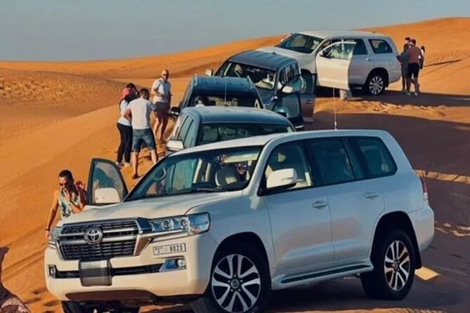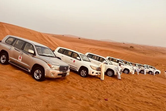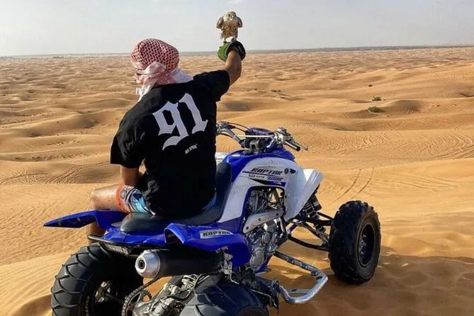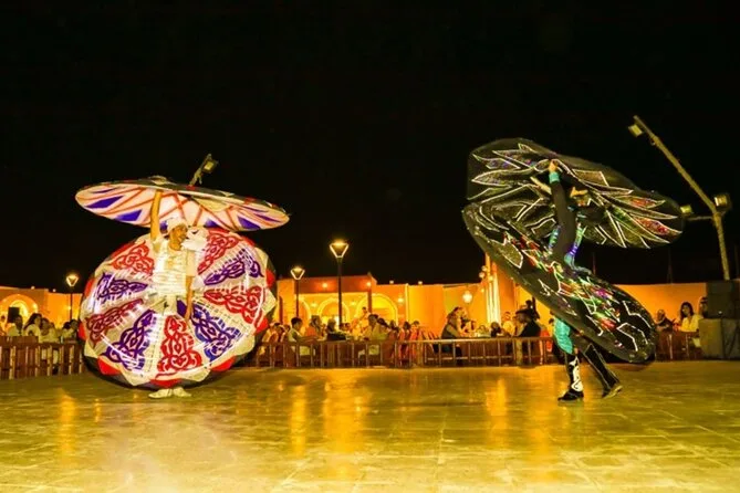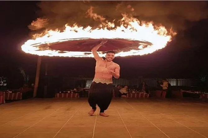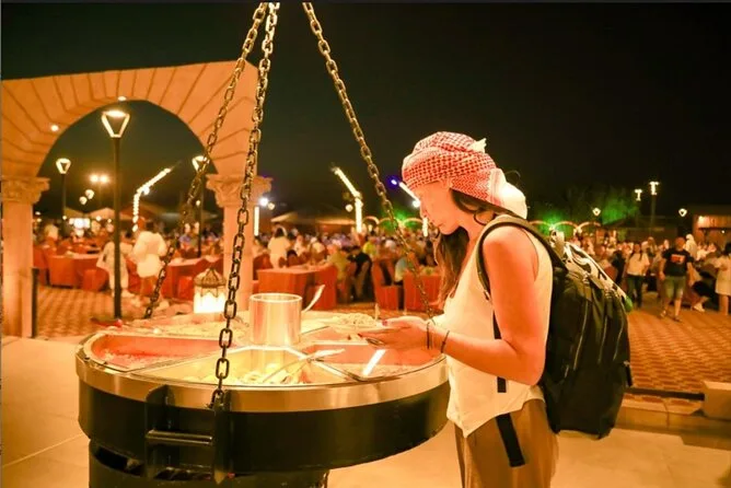 Die Tour umfasst Sandboarding, Kamelreiten, Henna-Malerei für Damen, Feuershow, Bauchtanz, Tanoura-Tanz, Anprobe arabischer Kostüme, Falkenvorführung und mehr.