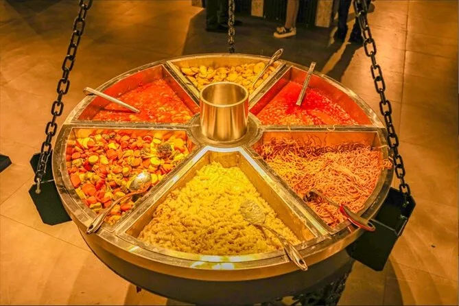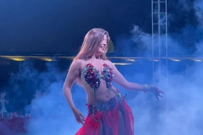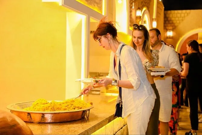 Im Camp probierten wir die langen Gewänder an (ich sah albern aus, aber egal) und ließen uns Henna-Tattoos machen, während der Grillduft durch die Luft zog. Die Feuershow war spektakulär – wer zu nah stand, spürte die Hitze im Gesicht – und beim Bauchtanz unter den Lichterketten klatschte jeder mit. Beim Tanoura-Tanz wurde ich sogar auf die Tanzfläche gezogen; ich stolperte fast, aber das störte niemanden. Das Buffet war riesig: gegrillte Kebabs, Salate, Gerichte, die ich nicht kannte, aber trotzdem probierte. Auf den Kissen sitzend, mit dem Teller im Schoß, fühlte sich das nach all dem Trubel und den Farben einfach perfekt an.