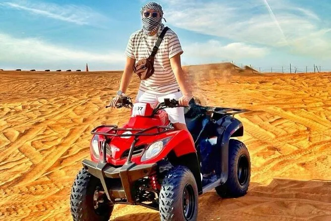 Du fährst von Dubai los für wilde 4x4 Dünenfahrten, probierst Sandboarding bei Sonnenuntergang, teilst Datteln und Kaffee unter freiem Himmel, entspannst bei Kamelritten und erlebst abends Feuershows, Bauchtanz und ein großes BBQ unter dem Sternenhimmel. Ein bisschen chaotisch, aber unvergesslich.
