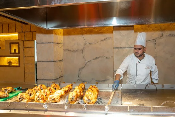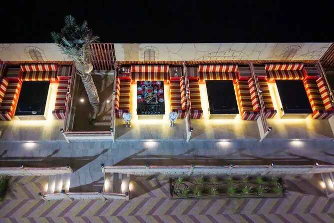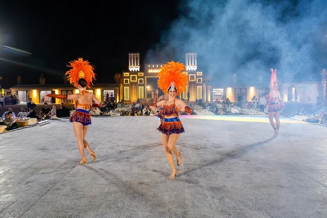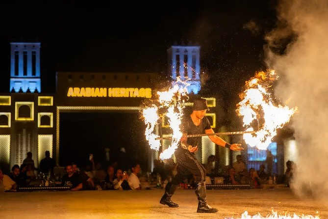 Dein Abend beinhaltet Abholung und Rückfahrt im 4x4 von Dubai oder Sharjah; aufregendes Dune Bashing auf roten Dünen mit erfahrenem Guide; eine kurze Kamelritt; unbegrenzt Softdrinks sowie arabischen Tee und Kaffee im Camp; Henna-Tattoos von lokalen Künstlern; Zugang zu einem arabischen Wüstencamp; Sandboarden; neun Live-Shows inklusive Bauchtanz und Feuershows; sowie ein internationales BBQ-Buffet mit vegetarischen Optionen, bevor es spät in der Nacht zurück zum Hotel geht.