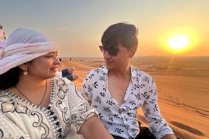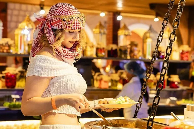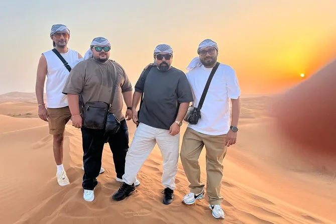 Dein Tag umfasst die Abholung und Rückfahrt an deinem Standort in Dubai mit einem freundlichen lokalen Guide; 25–30 Minuten Dune Bashing über rote Sanddünen; eine kurze Kamelritt-Tour; Sonnenuntergang von hohen Dünen; Zugang zu einem traditionellen Camp mit Bauchtanz, Feuershow und Tanura-Tanz; Möglichkeiten für Shisha und kleine Henna-Tattoos; arabische Kostüme zum Anziehen für Fotos; sowie ein reichhaltiges BBQ-Buffet mit vegetarischen und fleischhaltigen Gerichten und unbegrenzt Softdrinks und Wasser – bevor es unter dem Sternenhimmel zurückgeht.