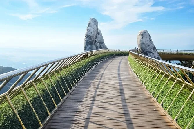 Spaziere über die berühmte Golden Bridge hoch über den Wolken, fahre mit der längsten Seilbahn Südostasiens durch neblige Hügel, entdecke Gärten und Pagoden mit einem lokalen Guide und genieße ein vietnamesisches Buffet, bevor du entspannt zum Schiff zurückkehrst – und sicher noch an die riesigen Hände denkst, die dich tragen.