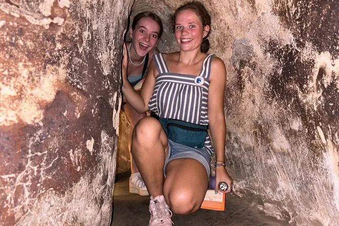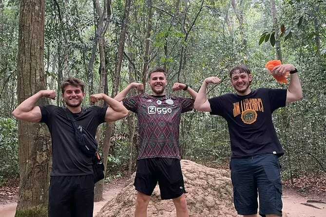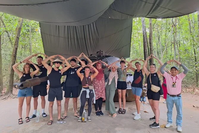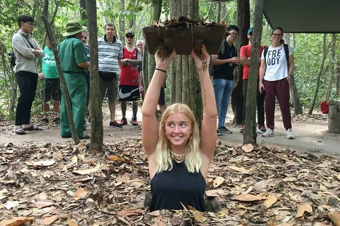 Krabbele durch die echten Cu Chi Tunnel mit einem lokalen Guide, der Familiengeschichten erzählt, probiere einfache Kriegszeit-Snacks wie Tapiokawurzel, sieh traditionelle Lackkunst und spüre Geschichte hautnah – alles mit Abholung und bequemer Fahrt von Ho-Chi-Minh-Stadt.