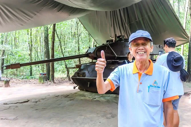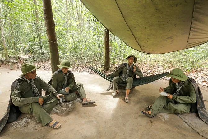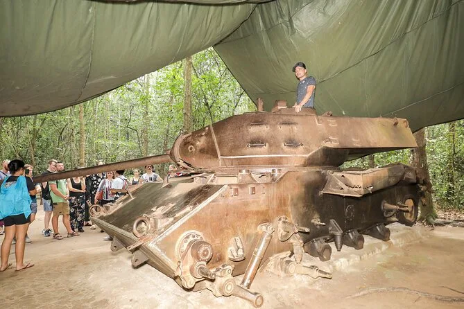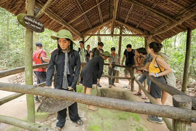 Dein Tag beginnt mit der Abholung vom Hotel in den zentralen Bezirken von Ho-Chi-Minh-Stadt. Du reist bequem im klimatisierten Fahrzeug zu den Cu Chi Tunneln, wo ein vietnamesischer Guide auf Englisch dich durch unterirdische Bunker und Ausstellungen führt. Wasser, gekochte Tapioka und Tee sind inklusive, bevor du sicher zurück zu deinem Startpunkt im District 1 gebracht wirst.