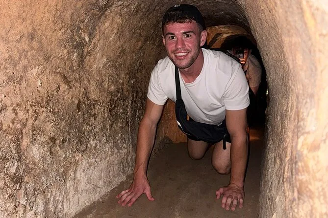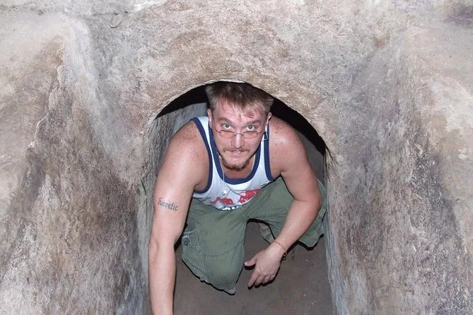 Erlebe mit kleiner Gruppe und lokalem Guide echte Cu Chi Tunnel bei Ho-Chi-Minh-Stadt, sieh dir einen Kriegsfilm im Wald an, probiere gekochten Maniok mit heißem Tee wie damals und entdecke versteckte Küchen und Falltüren. Ehrliche Geschichten und viel Spaß inklusive.