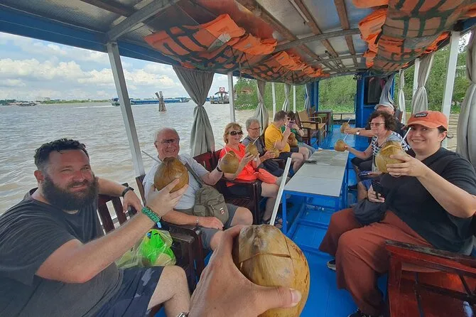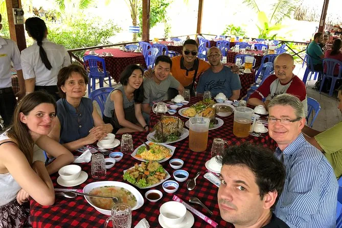 Du fährst mit einem Sampan durch die Kanäle, probierst tropische Früchte, besuchst eine Honigfarm und eine Kokosnusswerkstatt und erlebst Live-Musik von Einheimischen.