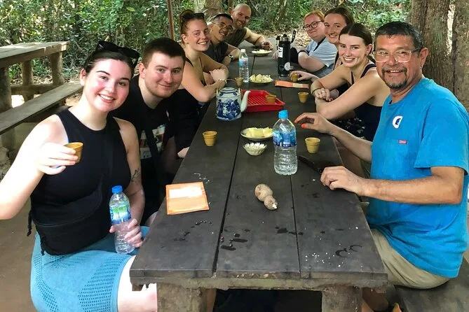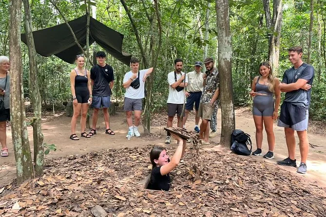 Dein Tag beinhaltet Hotelabholung und Rückfahrt in den zentralen Bezirken von Ho-Chi-Minh-Stadt, Eintritt zu den Cu Chi Tunneln und Mekong-Delta, einen englischsprachigen Guide, vietnamesisches Mittagessen mit veganen Optionen, Verkostungen tropischer Früchte und Honigtee auf lokalen Farmen, Bootsfahrten mit Motorboot und Sampan durch die Kanäle des Deltas sowie den Transport im klimatisierten Minivan oder Bus zurück zum Hotel am Abend.