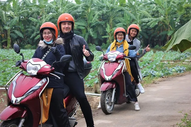 Dein Tag beinhaltet Abholung und Rückfahrt im Zentrum von Hanoi oder Treffpunkt am Opernhaus; Fahrten auf bequemen Honda Lead Scootern, meist mit weiblichen Guides; täglich desinfizierte Helme; Wasserflaschen während der Tour; Teepausen bei Einheimischen; Eintritt in alte Dörfer und zur Zitadelle von Co Loa; ein komplettes vietnamesisches Mittagessen mit Dessert oder Eierkaffee, bevor du entspannt zurück in die Stadt fährst.