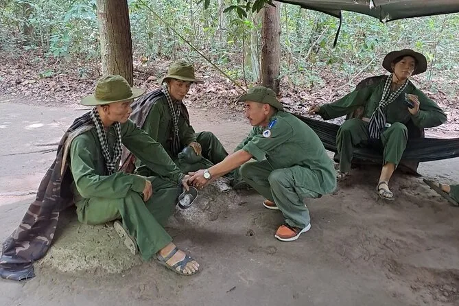 Dein Tag beinhaltet die Abholung und Rückfahrt vom Hotel im District 1 von Ho Chi Minh City, alle Eintrittskarten für die Cu Chi Tunnel, Wasser für die Fahrt durch die Reisfelder, einen englischsprachigen Guide, der Familiengeschichten erzählt, sowie einen Snack aus gedämpfter Kassava mit heißem Tee vor der Rückfahrt am Nachmittag.
