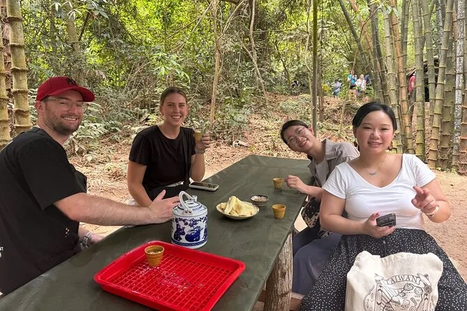 Danach saßen wir auf Holzbankern, tranken heißen Tee und aßen gedämpfte Kassava – das „Guerilla-Essen“. Nicht gerade mein typisches Frühstück, aber irgendwie tröstlich nach dem Aufenthalt unter der Erde. Minh zeigte uns, wie man die Kassava in Erdnüsse und Salz taucht; er lachte, als ich mich am heißen Tee verschluckte. Für einen Moment herrschte Stille in der Gruppe, wir lauschten den Zikaden und sahen uns an – wow, hier ist wirklich Geschichte passiert.