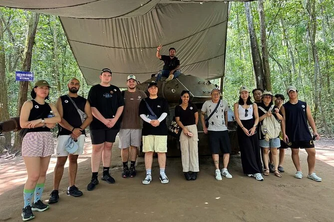 In den Cu Chi Tunneln sahen wir in einer schattigen Hütte einen alten Schwarz-Weiß-Dokumentarfilm, die Stimmen knisterten aus dem Lautsprecher. Minh ließ uns Zeit, keine Eile. Er beantwortete jede Frage – auch meine unbeholfenen zu den Fallen – und erzählte kleine Geschichten, die sein Großvater ihm weitergegeben hatte. In einen dieser engen Tunnel zu kriechen war… ehrlich gesagt ziemlich beklemmend. Mein Shirt blieb an der rauen Erde hängen und für einen Moment stand ich einfach still, dachte daran, wie Menschen hier monatelang gelebt haben. Das kann man sich kaum vorstellen, bis man es selbst spürt.