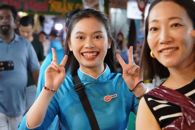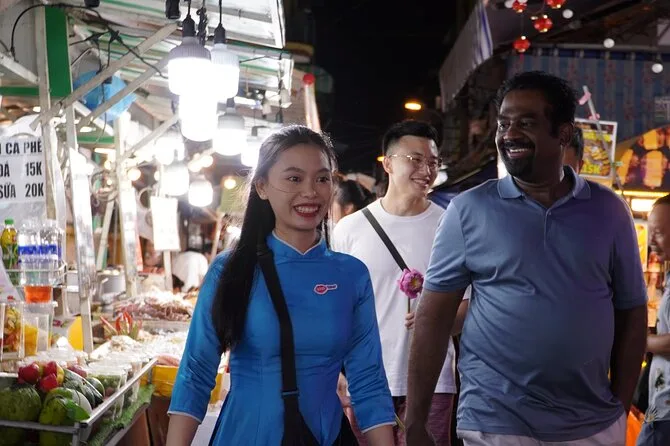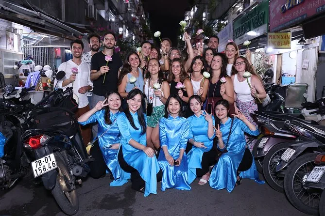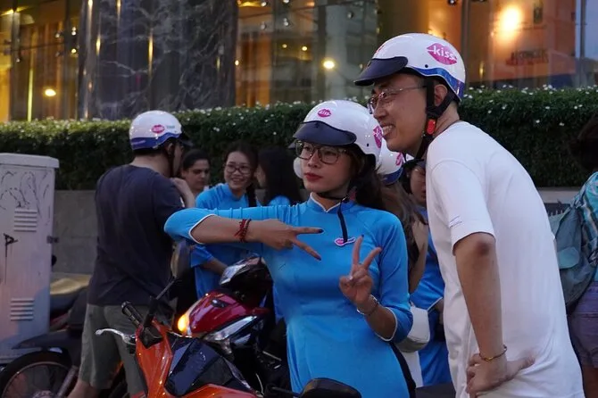 Auf dieser Scooter-Food-Tour mit Fahrerinnen im traditionellen Ao Dai fährst du als Sozius durch fünf lebhafte Viertel von Ho-Chi-Minh-Stadt. Probiere über zehn lokale Gerichte von Straßenständen und Märkten, genieße Zuckerrohrsaft oder Bier mit deiner Guide und entdecke Chinatown sowie den Blumenmarkt bei Nacht. Freu dich auf viel Spaß, kräftige Aromen und ein Stadtleben, das du zu Fuß so nicht erlebst.