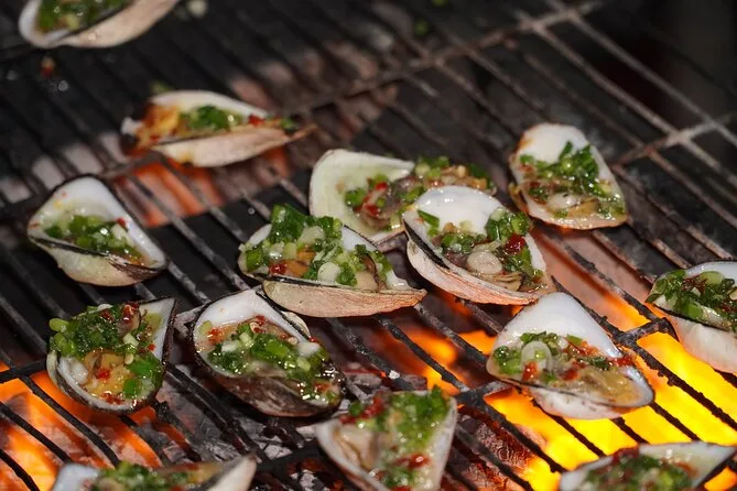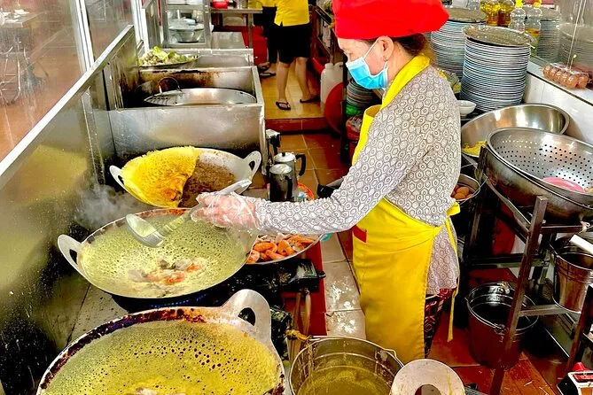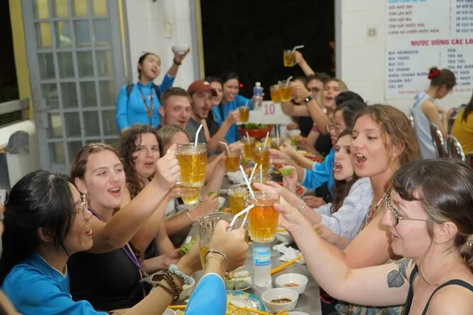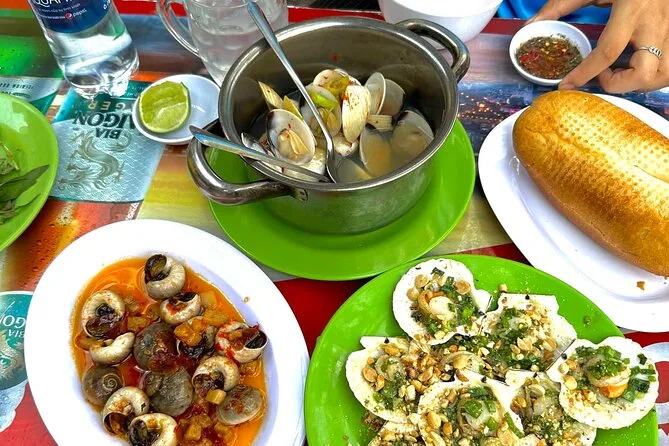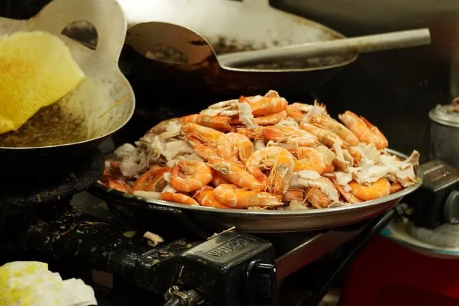 Dein Abend beinhaltet den kostenlosen Hoteltransfer im Zentrum von Ho-Chi-Minh-Stadt sowie unbegrenzt Essen und Getränke an allen Stopps – von Nudelsuppen über BBQ-Meeresfrüchte auf der Vĩnh Khánh Straße bis hin zu bánh xèo Pfannkuchen. Deine freundliche, englischsprachige Fahrerin bringt dich sicher mit dem Motorroller durch fünf Stadtviertel (Helm und Regenponcho inklusive). Die Reiseversicherung ist ebenfalls abgedeckt, sodass du dich ganz aufs Essen und Entdecken konzentrieren kannst.