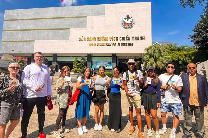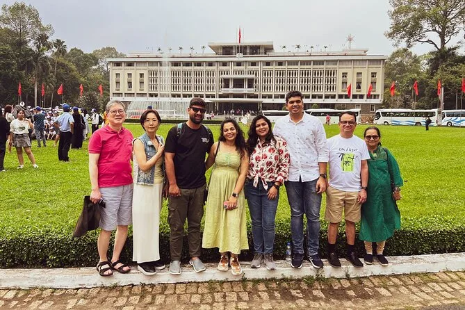 Dein Tag startet mit der Abholung am Hotel im District 1 per klimatisiertem Van oder Bus, inklusive Eintritt zu allen besuchten Orten wie dem Wiedervereinigungspalast und dem Kriegsmuseum, Wasserflaschen während der Tour, einem englischsprachigen Guide mit lokalen Einblicken und einem traditionellen vietnamesischen Mittagessen, bevor ihr gemeinsam die Cu Chi Tunnel erkundet.